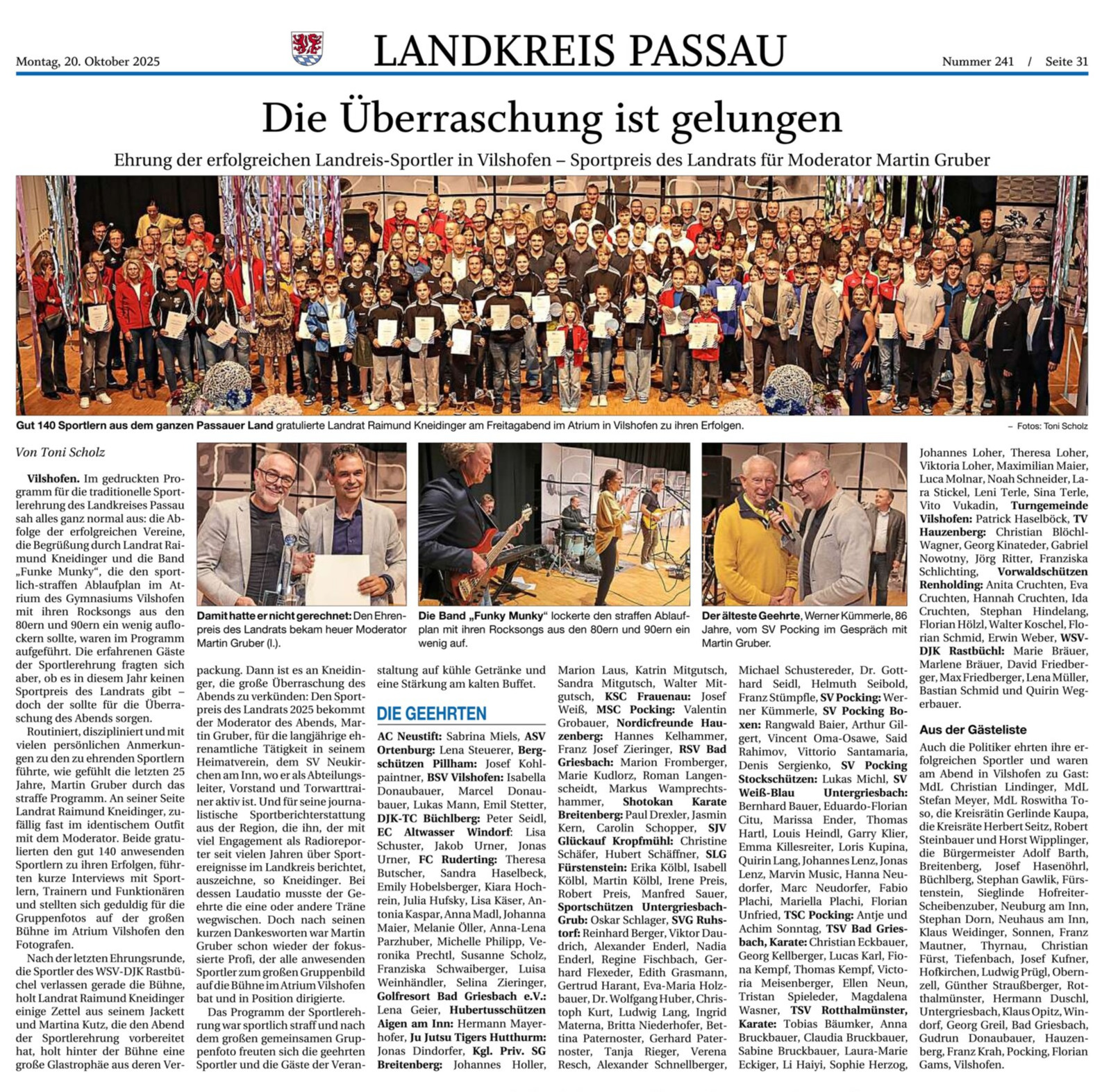 Der Landkreis Passau ehrt seine erfolgreichen Sportlerinnen und Sportler in einer eigenen Ehrung. Voraussetzungen für die Ehrung sind: