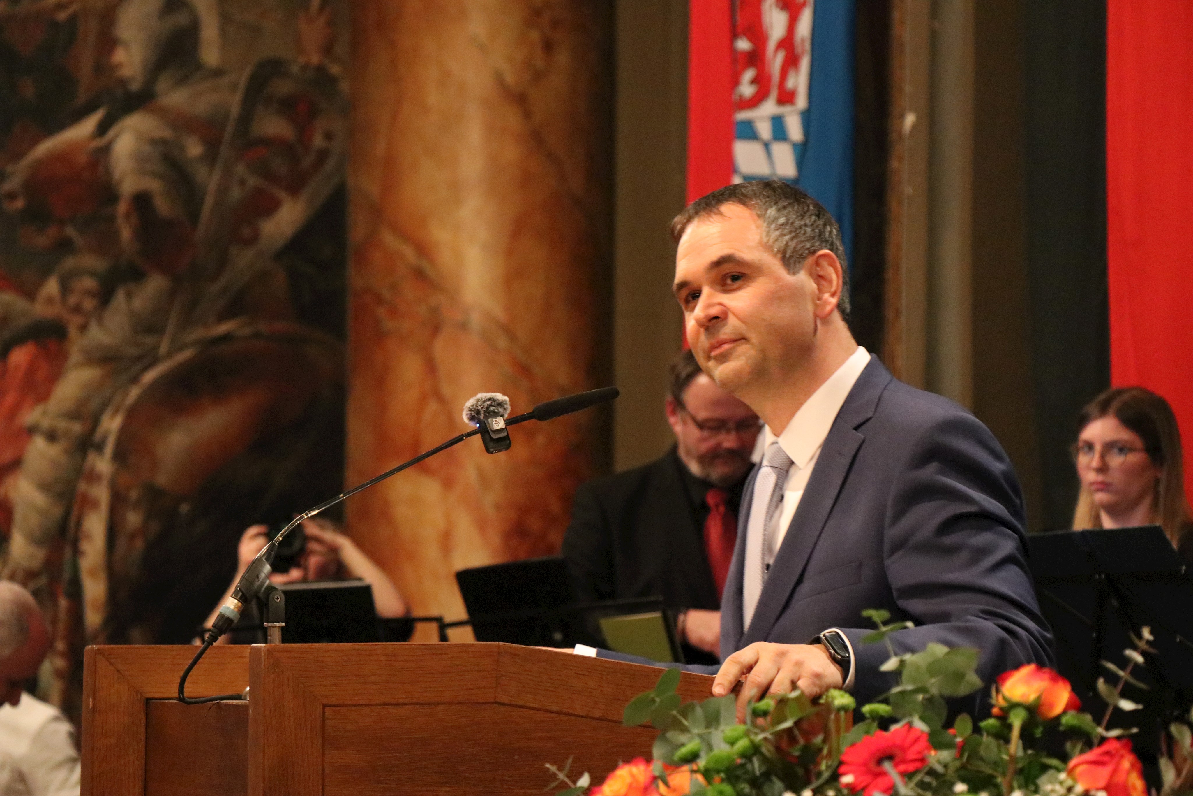 Landrat Raimund Kneidinger wollte seine Rede als Appell verstanden wissen, gerade in Zeiten voller Herausforderungen Optimismus zu zeigen. Gerade die junge Generation habe es verdient, in einem Klima der Zuversicht und des Aufbruchs zu leben. Dies gelte auch für die vielen engagierten Menschen im Ehrenamt und in der Wirtschaft.