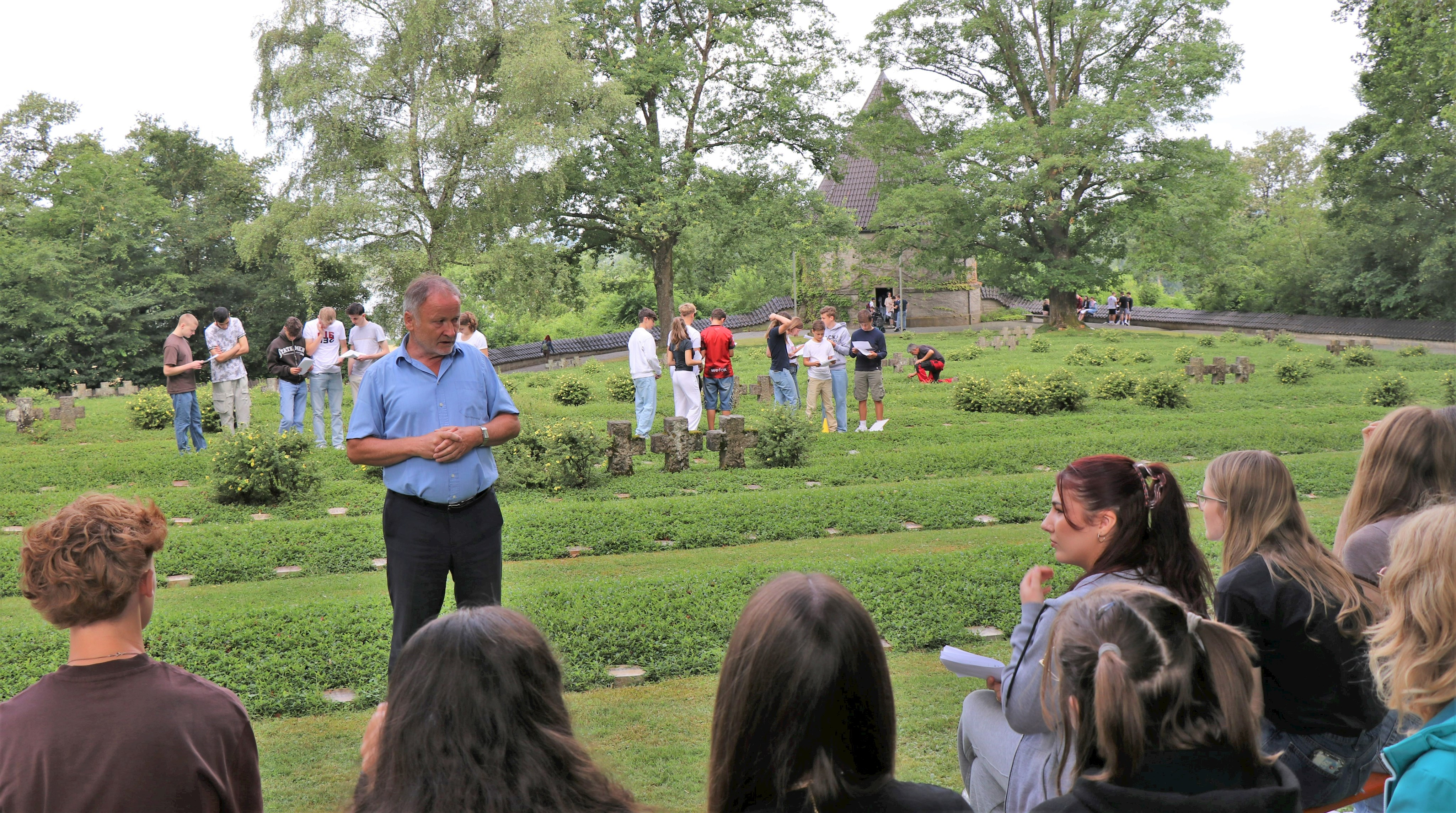 Zum Einstieg war ein Praxistag auf dem Gelände der Kriegsgräberstätte angesetzt. Die Schülerinnen und Schülermachten sich unter anderem mit Lage und Wirkung der Anlage vertraut und befassten sich in Absprache mit den Hinterbliebenen mit ausgewählten Einzelschicksalen. Willi Wagenpfeil, VdK-Kreisvorsitzender Vilshofen, informierte die Schüler über die aktuelle Bedeutung der Stätte als Mahnerin gegen Gewalt und Krieg. Wertvolle Hilfestellung leistet dabei der Schul- und Bildungsreferent des Volksbundes, Maximilian Fügen.